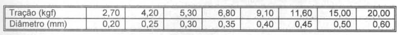 Pescando no Rio Tietê, na cidade de São Paulo, um turista fisgou um pneu de massa m = 10,5 kg, cuja densidade é 1400 kg/m 3. Considerando a tabela abaixo (que fornece a tração que uma linha de pesca pode suportar em funçlo do seu diâmetro). determine:
