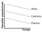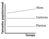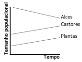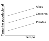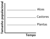 Qual das figuras representa a variação do tamanho populacional das plantas, alces e castores a partir da reintrodução de lobos no Parque Nacional de Yellowstone?