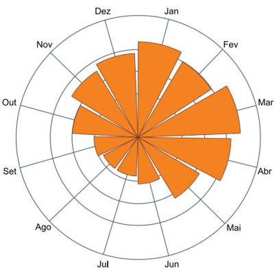 A análise do gráfico permite concluir que a frequência de acidentes ofídicos foi