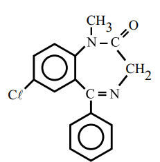Acima está representada a fórmula estrutural de um tranquilizante benzodiazepínico e, a respeito dele, é correto afirmar que