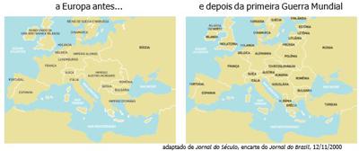 A partir da análise dos mapas, identifique a mudança ocorrida na organização política europeia após a Primeira Guerra.