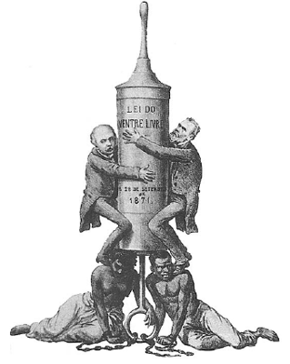 Publicada em 1884, a charge de Ângelo Agostini registra de modo crítico o significado da Lei do Ventre Livre (1871) no contexto da sociedade do Brasil Imperial. Com base nas informações contidas no documento e no seu conhecimento acerca do processo emancipacionista, ASSINALE a única opção que NÃO apresenta uma característica correta.
