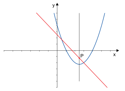 Representados em um sistema de coordenadas cartesianas ortogonais, os gráficos das funções f(x) = - 3/2 x+b e g(x) = px² - 5x + 4 se intersectam em vários pontos, sendo um deles o ponto P(x, y), situado no eixo de simetria da função g(x).