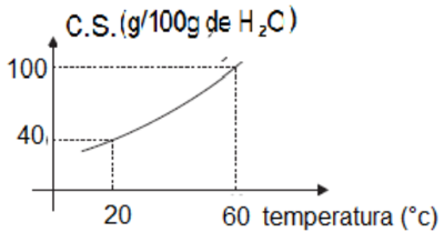 Resfriando 400g de uma solução saturada de brometo de sódio, de acordo com o gráfico abaixo, de 60°C a 20°C, a massa de precipitado em gramas será de: