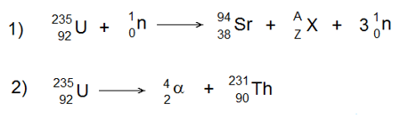 02) A equação 2 representa o decaimento radioativo do urânio-235 com a emissão de partículas alfa.