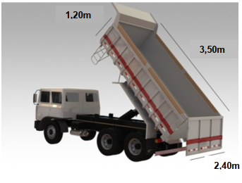 16. A caçamba de um caminhão basculante tem a forma de um paralelepípedo e as dimensões internas da caçamba estão descritas na figura. Uma construtora precisa deslocar 252 m³ de terra de uma obra para outra. Dessa forma, com esse caminhão serão necessárias exatamente 24 viagens para realizar esse deslocamento.