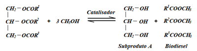 Sobre a reação acima, utilizada na preparação do biodiesel, é CORRETO afirmar que: