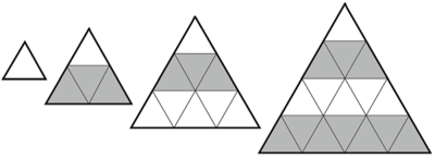 Um triângulo equilátero de lado N é subdividido em triângulos equiláteros de lado 1, como exemplificado na figura.