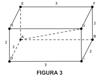 Seja um paralelepípedo reto com lados de comprimento 2, 3 e 2, conforme mostra a Figura 3, e
