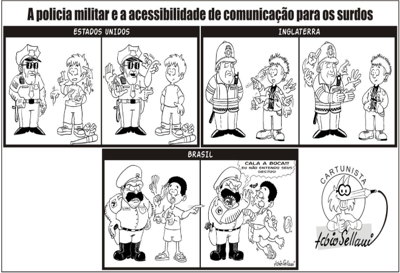 IV - critica a ineficácia da polícia militar do Brasil por não estar preparada para se comunicar com os surdos.