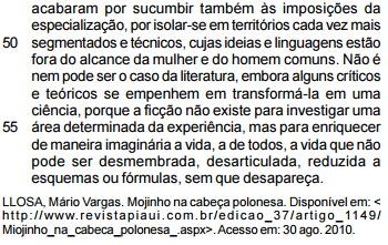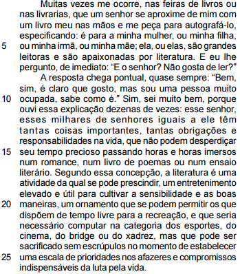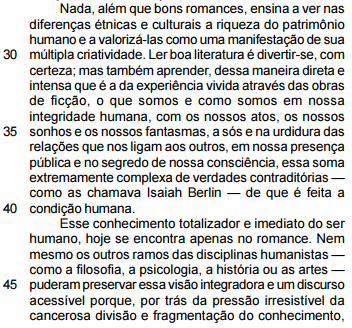 Incivilizado, bárbaro, órfão de sensibilidade e pobre de palavra, ignorante e grave, alheio à paixão e ao erotismo — um mundo sem literatura teria como traço principal o conformismo, a submissão dos seres humanos ao estabelecido. Seria um mundo animal.