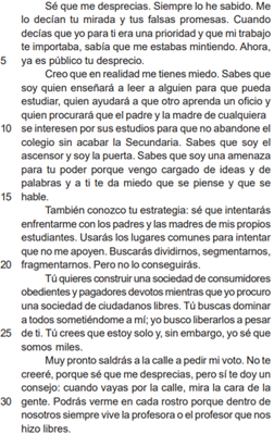 “porque dentro de nosotros siempre vive la profesora o el profesor que nos hizo libres.” (l. 30-32).