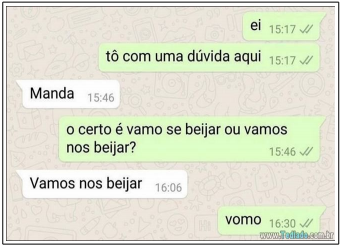 o primeiro interlocutor inicia a conversa demonstrando preocupação com a correção gramatical de uma frase, mas termina revelando outras intenções.