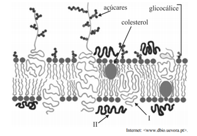 A estrutura II impede a passagem de íons e de moléculas solúveis em água, que são transportados através dos fosfolipídios.