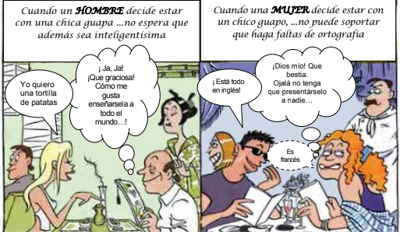 04. Las dos tiras plantean el tema de las desigualdades profesional e intelectual entre hombres y mujeres.