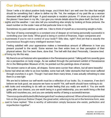 The texts “O poder criativo da imperfeição” and “Our (im)perfect bodies” discuss the concept of perfection, using examples from their respective areas.