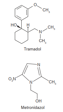 Tramadol é um opiácio usado como analgésico para o tratamento de dores de intensidade moderada a severa, atuando sobre células nervosas específicas da medula espinhal e do cérebro. O metronidazol possui atividade antiprotozoária e antibacteriana contra os