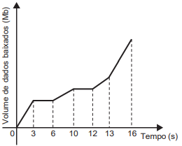 Utiliza-se o termo download para designar o processo pelo qual um arquivo é transferido de algum sítio da internet para o dispositivo do usuário (computador, tablet, celular). Quando a transferência é interrompida, diz-se que o download travou. O esboço do gráfico representa a evolução do download de um arquivo que demorou 16 segundos para ser concluído.