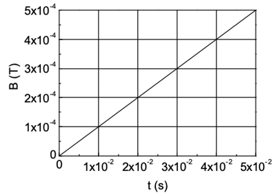 a) Considere que o campo magnético B atravessa perpendicularmente a espira e varia no tempo segundo a figura. Se a espira tem raio de 2 cm, qual é a força eletromotriz induzida?