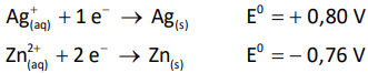 Visando a determinar o produto de solubilidade do brometo de prata (AgBr), um sal praticamente insolúvel em água, um professor de Química montou um sistema, em que um potenciômetro foi colocado entre dois eletrodos, sendo um eletrodo de zinco em condições padrão e um eletrodo formado por uma placa de prata metálica imersa em uma solução aquosa, com concentração em quantidade de matéria de íons brometo igual a 0,05 mol ⋅ L⁻¹ .