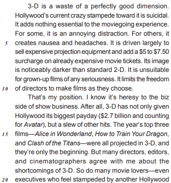 By Roger Ebert Newsweek.com, May 10, 2010 Fonte: http://www.newsweek.com/2010/04/30/why-i-hate-3-d-andyou-should-too.html (with slight adaptations)