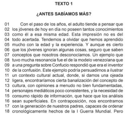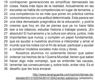 De acuerdo con el texto, las expresiones “una ojeada ligera” (líneas 11-12), “a menudo” (línea 13) y “¡En absoluto!” (líneas 26-27) pueden ser reemplazadas, sin cambio de significado, respectivamente por