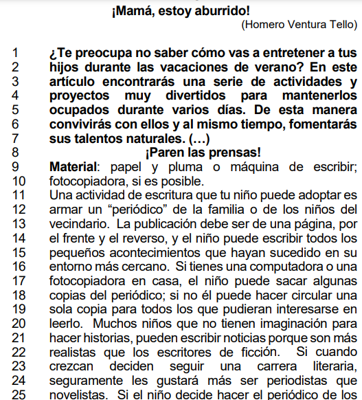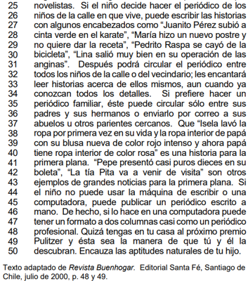 01) El texto sugiere dos grandes temáticas para el posible periódico infantil: local y/o familiar.