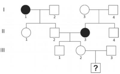 O casal III2 e III3 está esperando um menino. Considerando que, nessa população, uma em cada 50 pessoas é heterozigótica para essa alteração, a probabilidade de que esse menino seja afetado é