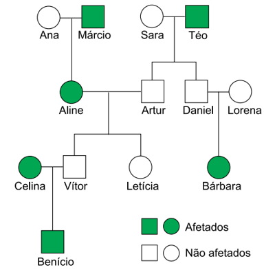 A análise de um heredograma revelou a existência de algumas pessoas de uma mesma família afetadas por uma anomalia genética
