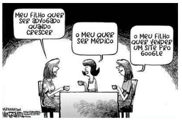 Com base na charge e na teorização apresentadas, é correto afirmar que os jovens do século XXI