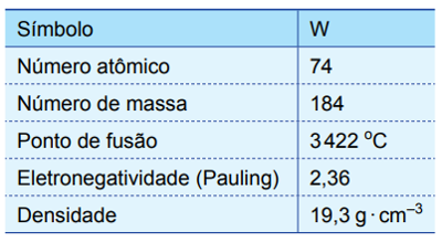 A partir das informações contidas na tabela, é correto afirmar que o átomo neutro de tungstênio possui