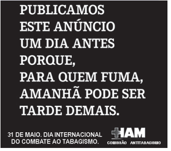Nessa peça publicitária a referência feita a “quem fuma”, relacionada com a publicação antecipada do anúncio, prenuncia uma