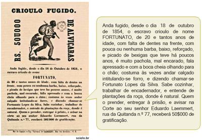 O anúncio exemplifica uma prática que se tornou comum na imprensa brasileira no século XIX: a divulgação de oferta de recompensas por escravos fugidos. Tal prática possibilita situar a importância dessa mão de obra em diversas atividades econômicas.
