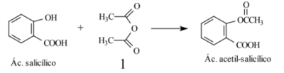 A aspirina pode ser considerada umas das drogas de maior sucesso e emprego em todos os tempos. Ela apresenta propriedades analgésica, antipirética, anti-inflamatória e antiplaquetária. Há pelo menos dois séculos é empregada no tratamento da febre e do reumatismo. Mais recentemente é usada para prevenir ataques do coração, reduzindo a coagulação do sangue nas artérias coronárias. A aspirina tem como princípio ativo o ácido acetil-salicílico, que é obtido através da seguinte reação: