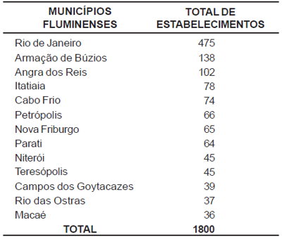 Na atualidade, os investimentos em hotelaria crescem em quase todos os países. No Estado do Rio de Janeiro, pelos dados do Ministério do Trabalho, de 2002, a distribuição espacial da rede hoteleira dava-se, em alguns municípios fluminenses, da seguinte forma:
