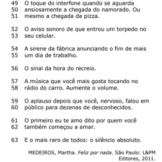 ( ) “O toque do interfone quando se aguarda ansiosamente a chegada do namorado.” (linhas 49-50)