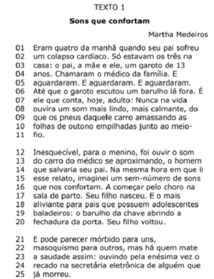 ( ) “[...] o recado na secretária eletrônica de alguém que já morreu.” (linhas 23-25)