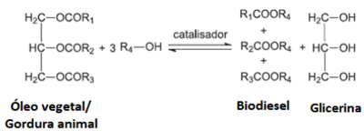 O biodiesel é um combustível produzido para ser utilizado nos carros ou caminhões com motores a diesel, feito a partir de óleos vegetais ou de gordura animal. Para produzir biodiesel, o óleo retirado das plantas é misturado ao metanol e a um catalisador. São produzidos, então, o biodiesel e a glicerina, de acordo com a equação química abaixo:
