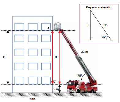 Os bombeiros precisaram realizar o resgate de uma pessoa que estava em um prédio, no ponto A, conforme mostra a figura.