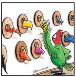 A charge faz referência à evolução do formato do bico das aves. Assinale a alternativa que contém informações corretas sobre esse processo.