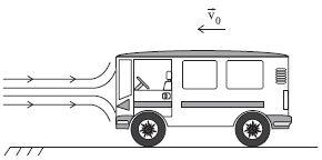 Um carrinho move-se para a esquerda com velocidade v₀, quando passa a ser empurrado para a direita por um jato d’água que produz uma força proporcional ao módulo de sua velocidade, Fv = C · v.