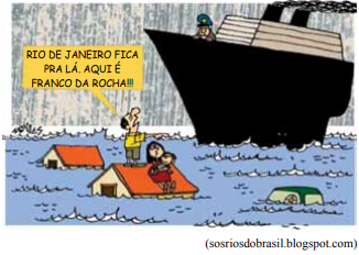 A charge mostra um problema que afeta muitas cidades brasileiras. Dentre as várias causas desse problema, pode ser citada a