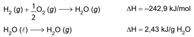 As equações a seguir representam a combustão do hidrogênio e a vaporização da água líquida.