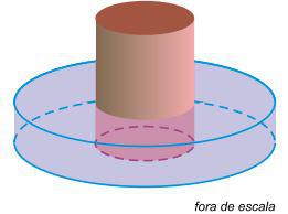 Um cilindro sólido, de ferro, com raio da base medindo 3 cm foi colocado no interior de um cilindro oco, de 3 cm de altura, conforme mostra a figura.