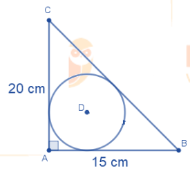Na figura abaixo, uma circunferência de centro D está inscrita em um triângulo retângulo ABC de tal modo que ela tangencia os três lados do polígono. Com isso, pode-se afirmar que o raio dessa circunferência mede, em cm: