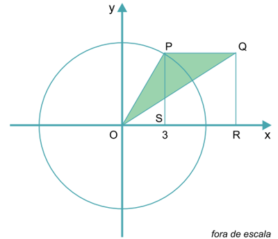 Sabendo que os lados do quadrado são paralelos aos eixos cartesianos, a área do triângulo OPQ, assinalado na figura, em unidades de área, é