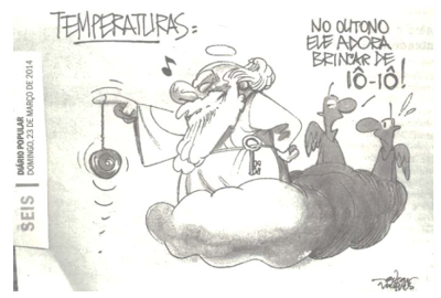 Assinale a alternativa que aponta a característica do clima, própria do outono no Rio Grande do Sul, destacada na charge.