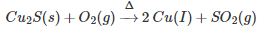 O cobre presente nos fios elétricos e instrumentos musicais é obtido a partir da ustulação do minério calcosita (Cu₂S). Durante esse processo, ocorre o aquecimento desse sulfeto na presença de oxigênio, de forma que o cobre fique "livre" e o enxofre se combine com o O₂ produzindo SO₂, conforme a equação química:
