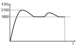 Em uma competição de levantamento de peso, um atleta exerce uma força, vertical para cima e de módulo variável no tempo, sobre os pesos com 180 kg de massa total. A figura a seguir mostra um gráfico do módulo da força total aplicada nos pesos pelo atleta em função do tempo, em um movimento de arremesso. Nesse movimento, há dois momentos em que o atleta mantém os pesos temporariamente em repouso. Após o movimento, o atleta larga os pesos repentinamente. Calcule o módulo da aceleração máxima que o atleta imprime aos pesos no movimento de arremesso. Considere a aceleração da gravidade g = 10 m/s².