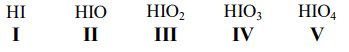 Os compostos abaixo são ácidos inorgânicos que contêm iodo. A respeito desses compostos, assinale a alternativa correta.
